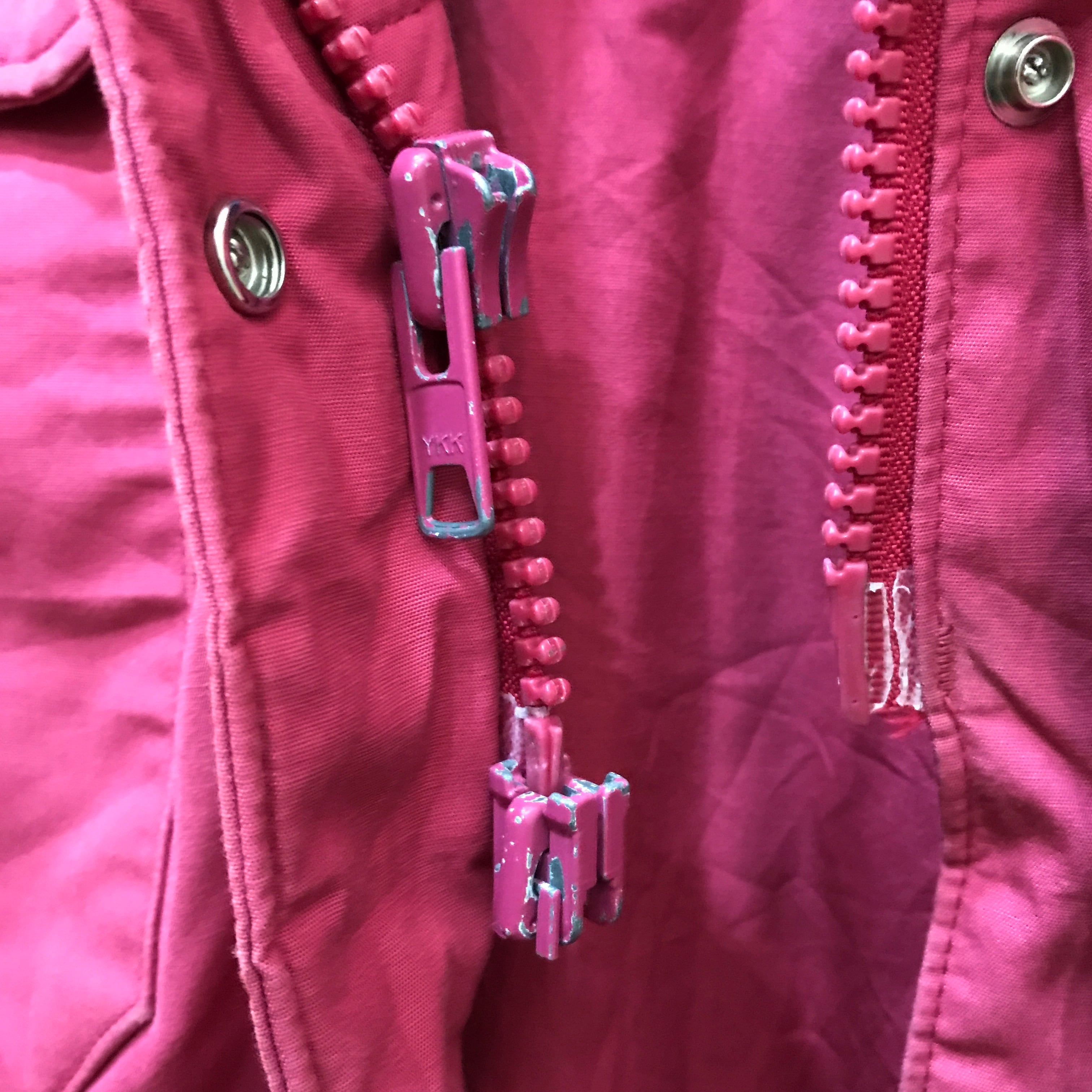 ダブルジップ、下ジップスライダー引き手破損。