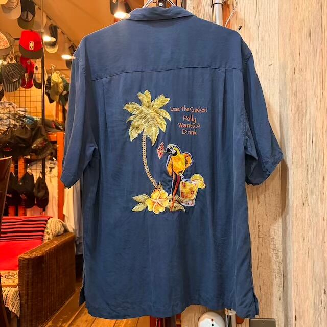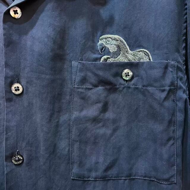 Luau ルアウ 刺繍入りシルク製アロハシャツ M 古着 (2041)